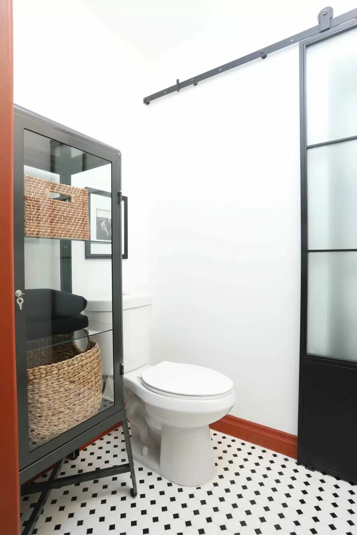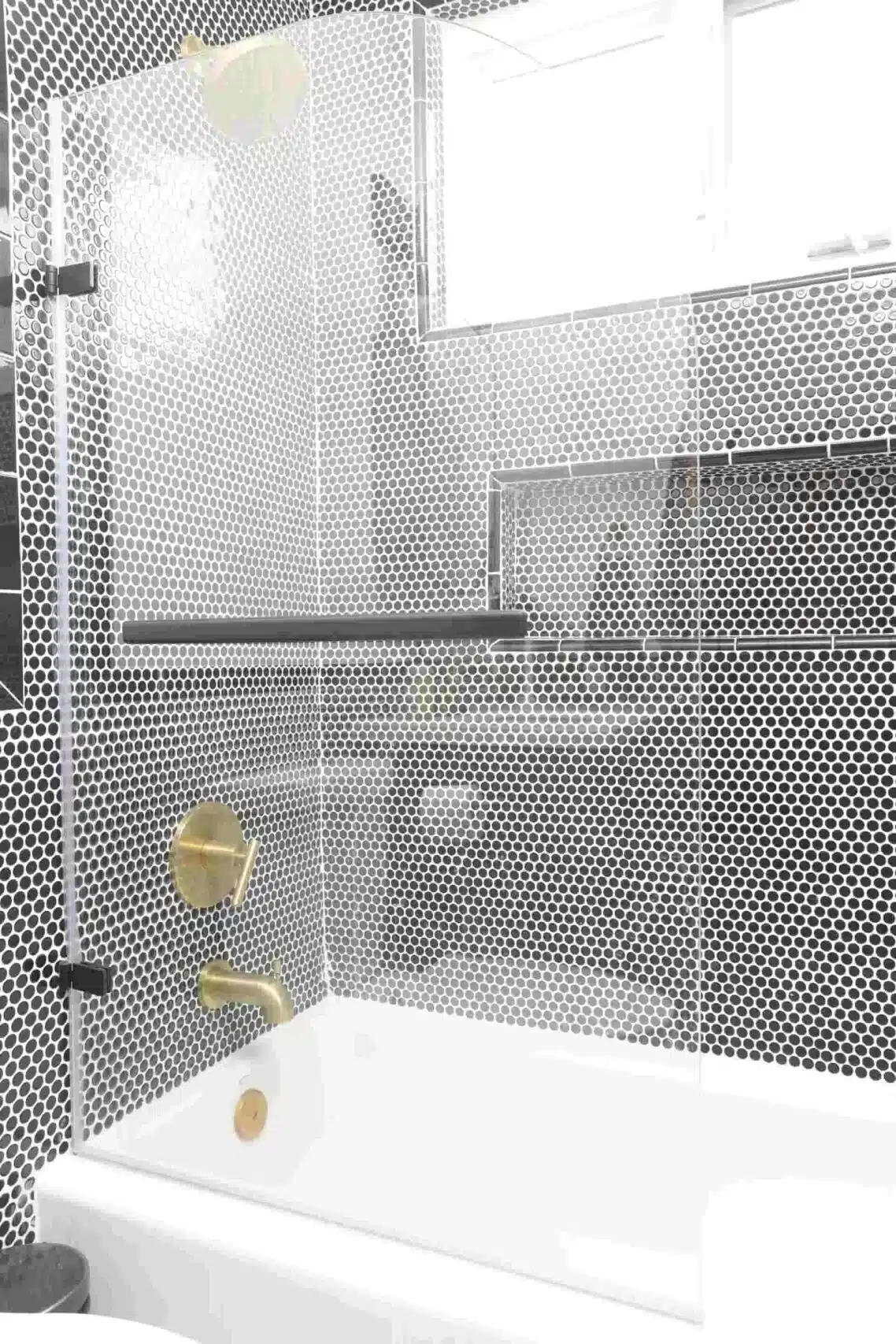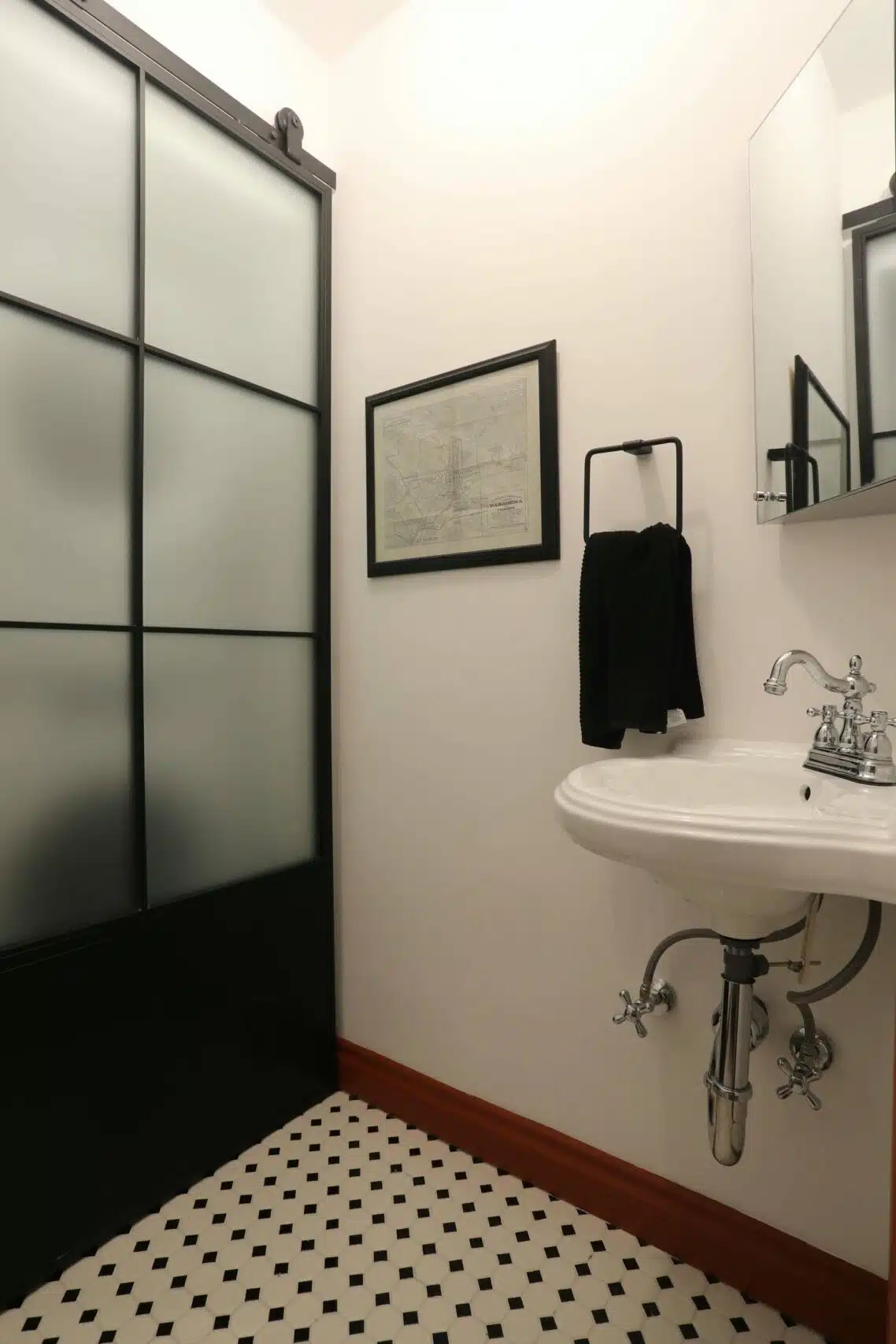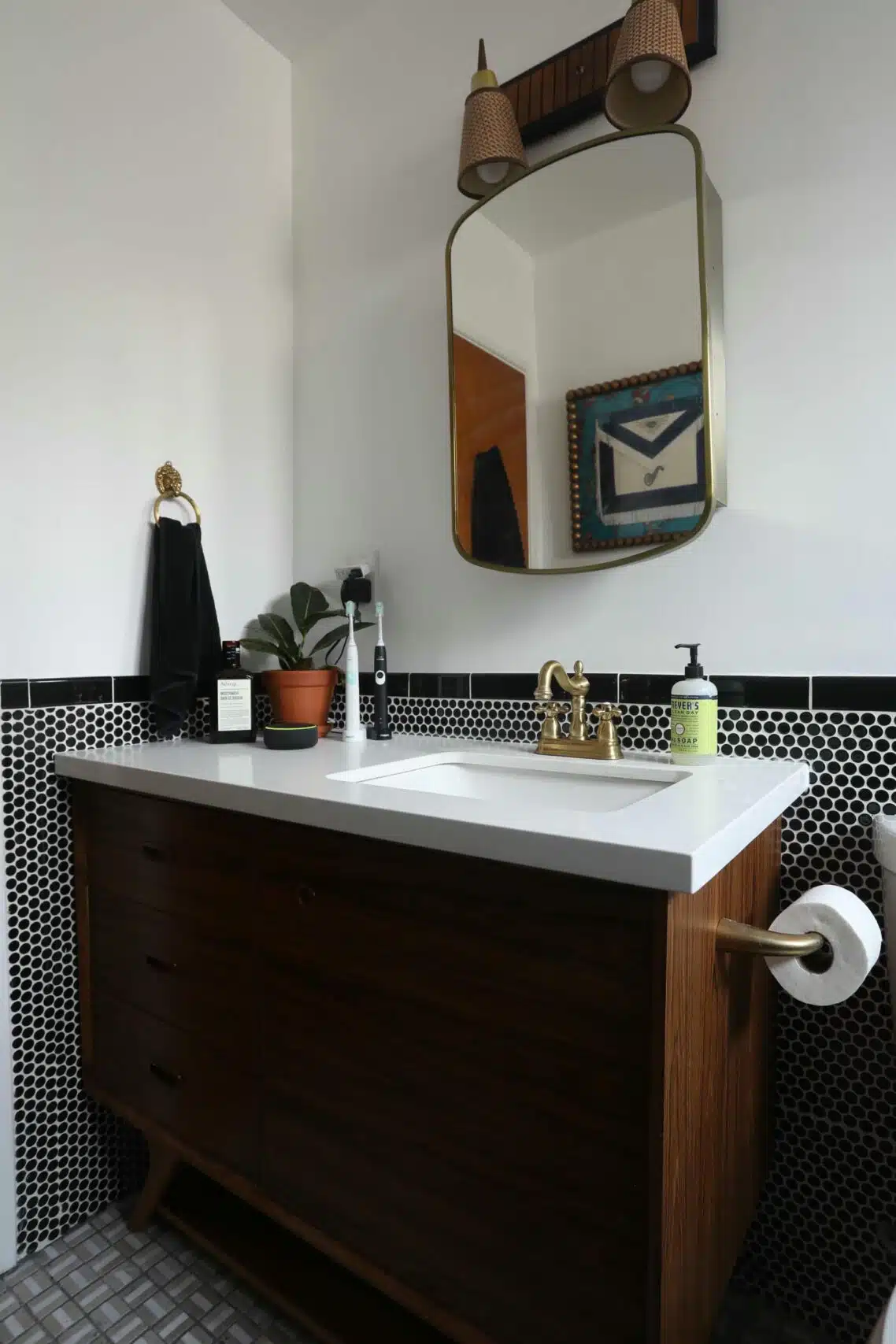 Complementary tile patterns and modern fixtures